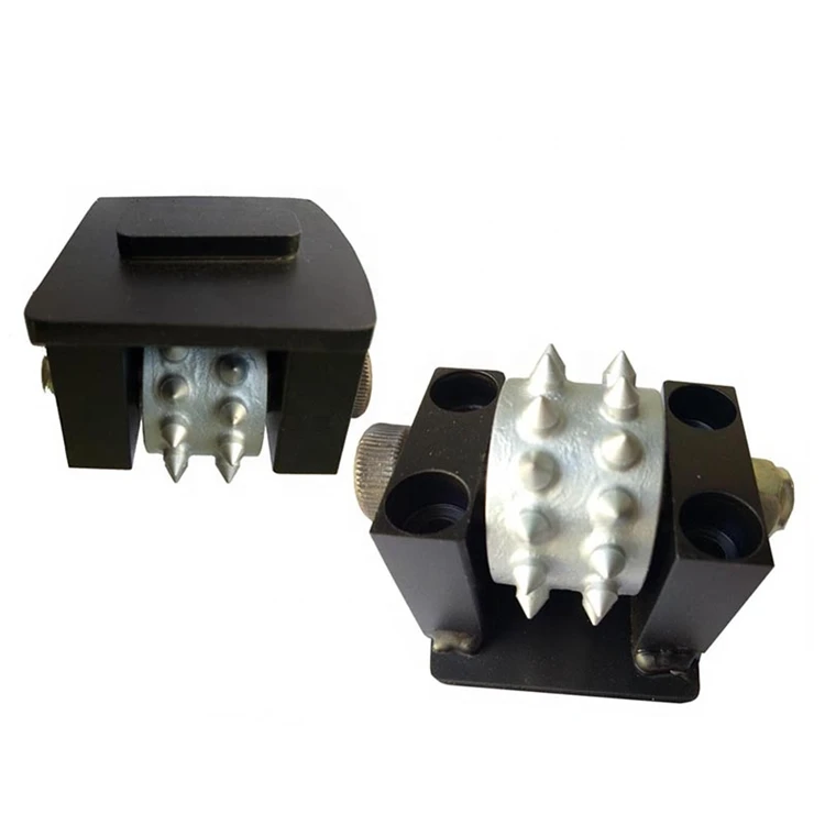Floor bush hammer can adapt to several kinds of grinder, from simple hand-held hammers to large electric machines, but the basic function of the regular bush hammer is always the same - 30pcs/45pcs/60pcs of conical or pyramidal carbide tips welded at the top of a large metal plate. The repeated hit of these carbide tips into stone or concrete surface creates a rough, pockmarked texture that looks like naturally weathered rock.